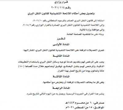 لمزيد من التفاصيل حول القرار اضغط الرابط التالي: https://qanoon.om/p/2021/mtcit20210114/