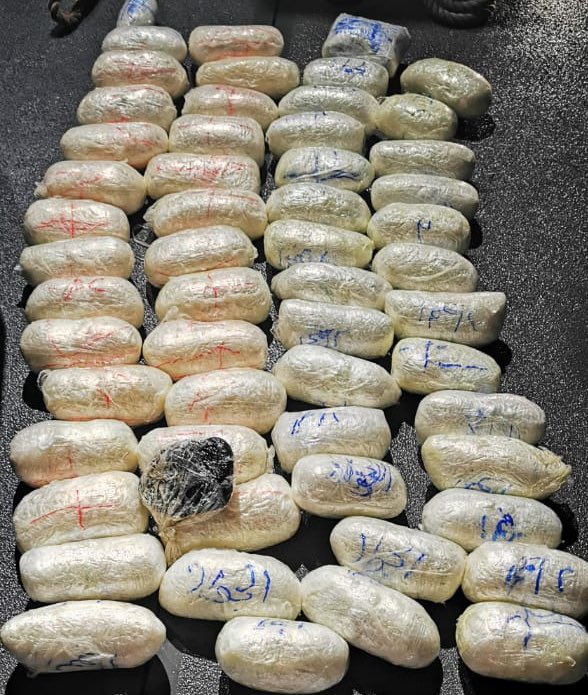 شرطة خفر السواحل بالتعاون مع إدارة مكافحة المخدرات والمؤثرات العقلية بجنوب الباطنة تضبط ٤ متسللين في عرض البحر، بتهمة تهريب وحيازة المواد المخدرة، وبحوزتهم 60 قالبا من مخدر الكريستال والحشيش وأكثر من ألف قرص من المؤثرات العقلية.