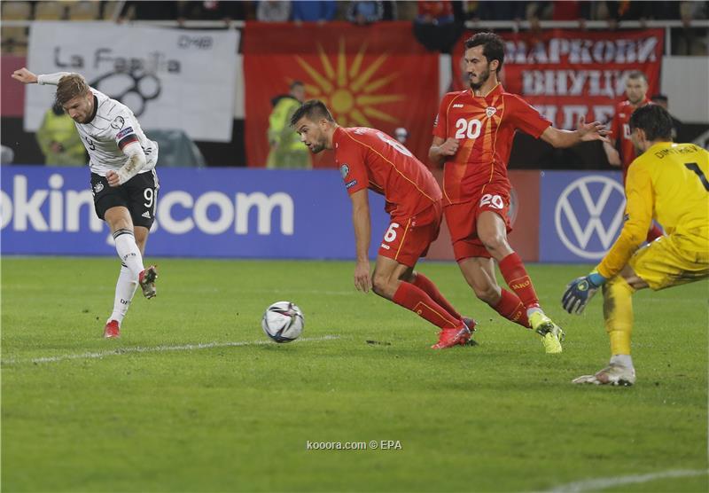 انتزع منتخب ألمانيا بطاقة التأهل الأولى من القارة الأوروبية إلى بطولة كأس العالم 2022 في قطر، وذلك بفوزه خارج أرضه على مقدونيا الشمالية برباعية نظيفة ضمن منافسات الجولة الثامنة بالمجموعة العاشرة.