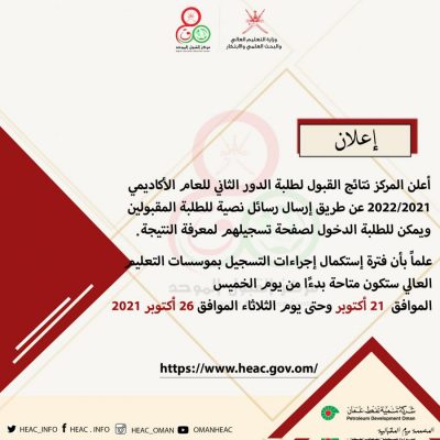 الرئيسية/أخبار محلية/الإعلان عن نتائج القبول لطلبة الدور الثاني أخبار محلية الإعلان عن نتائج القبول لطلبة الدور الثاني21/10/2021. 21/10/2021وهج الخليج_ مسقطShare on:WhatsApp21/10/2021. 21/10/2021 فيسبوك X لينكدإن Tumblr بينتيريست Reddit VKontakte مشاركة عبر البريد طباعة