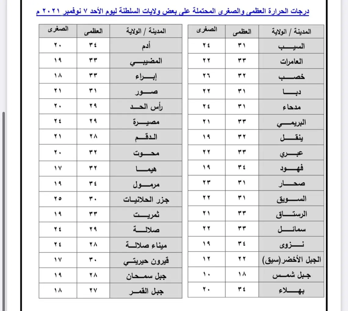 إليكم درجات الحرارة في بعض المناطق: