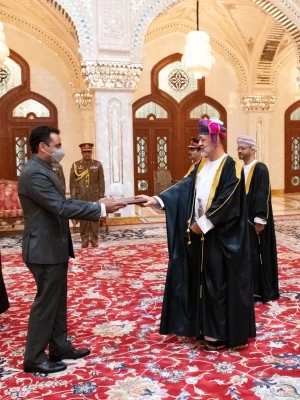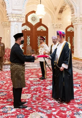 – سعادة السفير/ شايفول أنور محمد، سفيرًا فوق العادة مفوضًا من جلالة السلطان عبدالله بن السلطان أحمد شاه – ملك ماليزيا، معتمدًا لدى سلطنة عُمان.