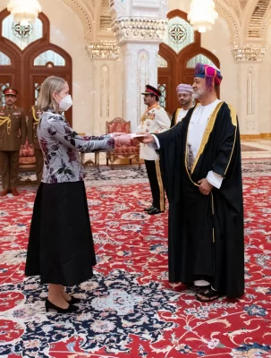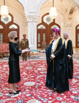 – سعادة السفيرة/ فيرونيك أولانيون، سفيرة فوق العادة مفوضة من قبل فخامة الرئيس/ إيمانويل ماكرون – رئيس الجمهورية الفرنسية، معتمدة لدى سلطنة عُمان.