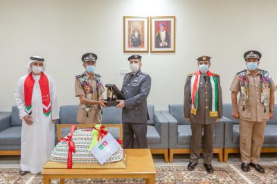 وفد من إمارة رأس الخيمة يزور منفذ الدارة البري بمحافظة مسندم للمشاركة في احتفالات سلطنة عمان بالعيد الوطني الحادي والخمسين المجيد