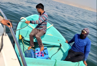 فريق الرقابة السمكية بمحافظة الوسطى يضبط بولاية محوت عدد (٨) عمال وافدين مخالفين يمارسون الصيد بالتحويط على قوارب صيد غير مرخصة.
