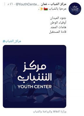 دشن مركز الشباب العماني اليوم حسابه الرسمي على منصة تويتر حيث أعلن عن إنشائه بالأمس صاحب السمو السيد ذي يزن بن هيثم آل سعيد وزير الثقافة والرياضة والشباب.