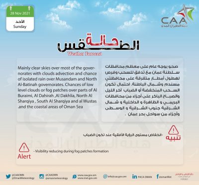 وهج الخليج-مسقط الأرصاد العمانية : حالة الطقس المتوقعة اليوم