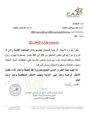 وهج الخليج_ مسقط أصدرت هيئة الطيران المدني تنبيه رقم 2 حول أخدود النهضة