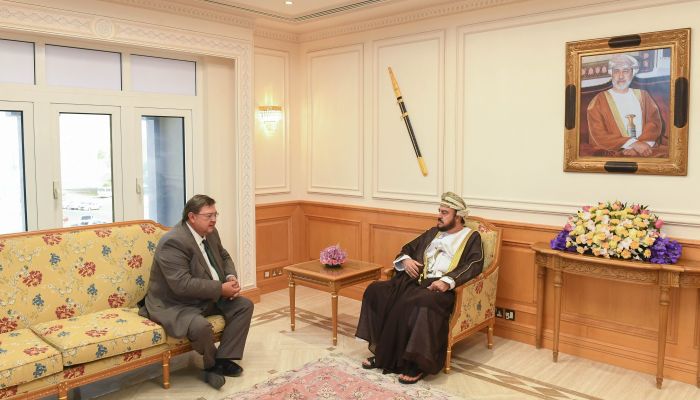 نيابة عن حضرة صاحب الجلالة السلطان هيثم بن طارق المعظم – حفظه الله ورعاه – صاحب السمـو السيـد أسعد بن طـارق آل سعيد نائب رئيس الوزراء لشؤون العلاقات والتعاون الدولي والممثل الخاص لجلالة السلطان يستقبل بمكتبه سعادة السفير ديمتري دوغادكين سفير روسيا الاتحادية المعتمد لدى سلطنة عُمان للتوديع بمناسبة انتهاء مهام عمله.