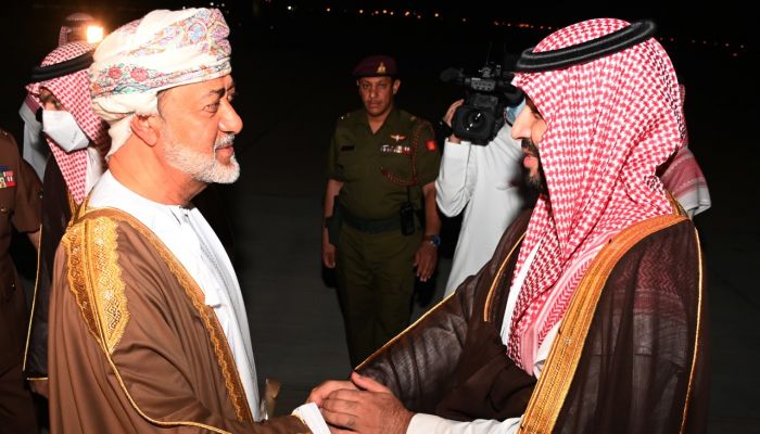 حضرةُ صاحبِ الجلالةِ السُّلطان هيثم بن طارق المعظم/ حفظه الله ورعاه/ وصاحبُ السُّمو الملكي الأمير محمد بن سلمان آل سعود وليُّ العهد نائب رئيس مجلس الوزراء وزير الدفاع بالمملكة العربية السعودية الشقيقة يعقدان جلسة مباحثاتٍ رسميَّة بقصر العلم العامر.