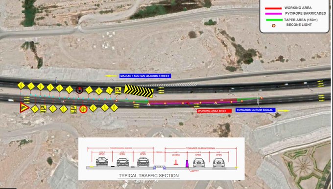 ستقوم بلدية مسقط بإغلاق جزئي لطريق مسقط السريع (القرم-قبل جسر الإعلام للقادمين من السيب باتجاه القرم) ،وذلك ابتداءً من مساء اليوم الخميس وحتى يوم السبت الموافق 11/ديسمبر/2021؛بغرض صيانة الجزء المتضرر من الطريق ،يرجى أخذ الحيطة والحذر واتباع الإرشادات المرورية الموضحة في الموقع.