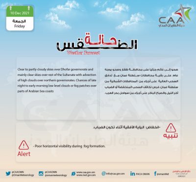 وهج الخليج-مسقط الأرصاد العمانية : حالة الطقس المتوقعة اليوم