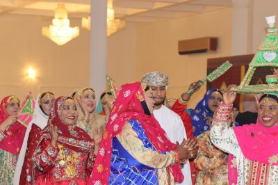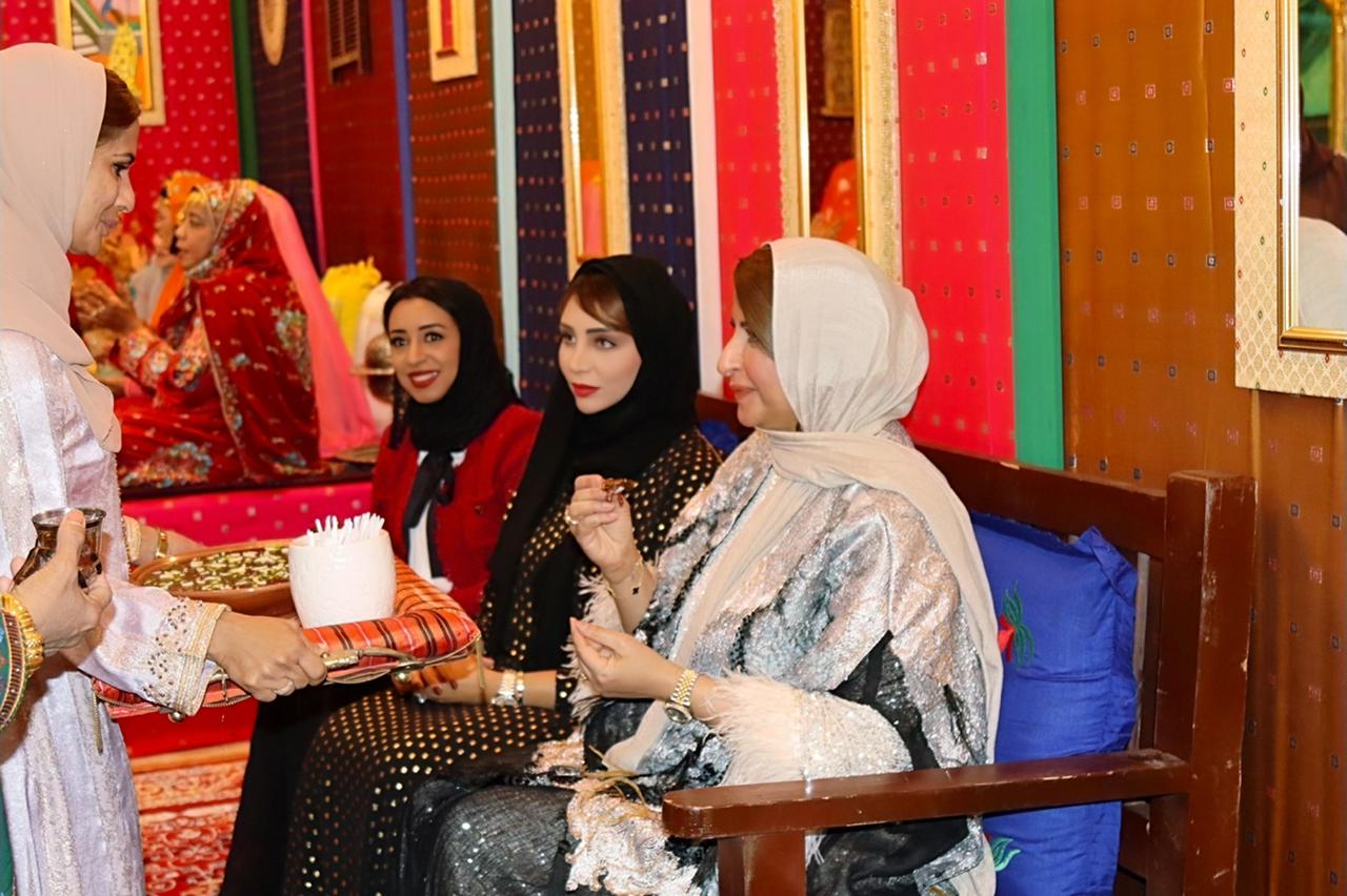 ولإبراز جانب من العادات والتقاليد العمانية في الزواج العُماني وذلك خلال تقديم لوحات لزفة العرس العماني وزفة الحناء العُمانية وهي من المناسبات العُمانية والتي تعد من العادات والتقاليد العمانية وموروث عماني أصيل كانت ولا زالت تقام في مختلف الولايات مع اختلاف المراسم في فقراتها وفنونها التقليدية ، وقد استمتع الوفد بالعرس العُماني الذي كان شارحا عن تفاصيل الثقافة العمانية والعادات والقيم الأصيلة التي توارثها الأجيال والتي تصاحبه الزفة العُمانية وزفة الحناء للعروس، حيث قامت إحدى الفرق التقليدية بتمثيل مظاهر العرس العماني مع ترديد الأهازيج والأغاني التراثية ونقل صور حية عنها كطابع تقليدي تفتخر به السلطنة.