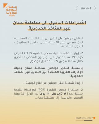 وهج الخليج-مسقط اشتراطات الدخول إلى سلطنة عمان عبر المنافذ الحدودية.