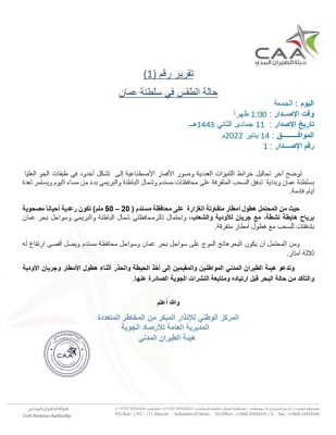 الأرصاد العُمانية تصدر تقرير رقم (1) حول المنخفض الجوي
