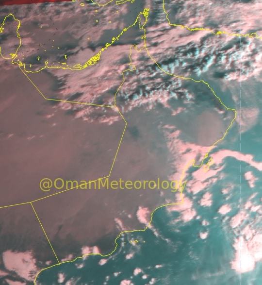 نشرت الأرصاد الجوية العمانية في حسابها الرسمي عبر موقع “تويتر” صورة جوية توضح انتشار وتدفق السحب على محافظات شمال وجنوب الباطنة والبريمي والظاهرة والداخليةومسندم قد يؤدي إلى هطول أمطار متفرقة وتكثف وتشكل السحب المنخفضة والضباب على أجزاء من محافظات جنوب الشرقية والوسطى وظفار.