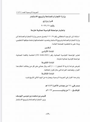 وهج الخليج-مسقط أصدر وزير التجارة فرارًا وزاريًا في ما يلي نصه :