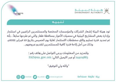 الرئيسية/أخبار محلية/هيئة البيئة تصدر تبيهاً أخبار محلية هيئة البيئة تصدر تبيهاً24/01/2022. 24/01/2022وهج الخليج_ مسقطShare on:WhatsApp24/01/2022. 24/01/2022 فيسبوك X لينكدإن Tumblr بينتيريست Reddit VKontakte مشاركة عبر البريد طباعة