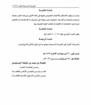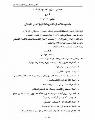 أصدر مجلس الشؤون الإدارية للقضاء قـرار رقم 20/2022 صادر فـي 24/1/2022 بتحديد الأعمال القانونية النظيرة للعمل القضائي.