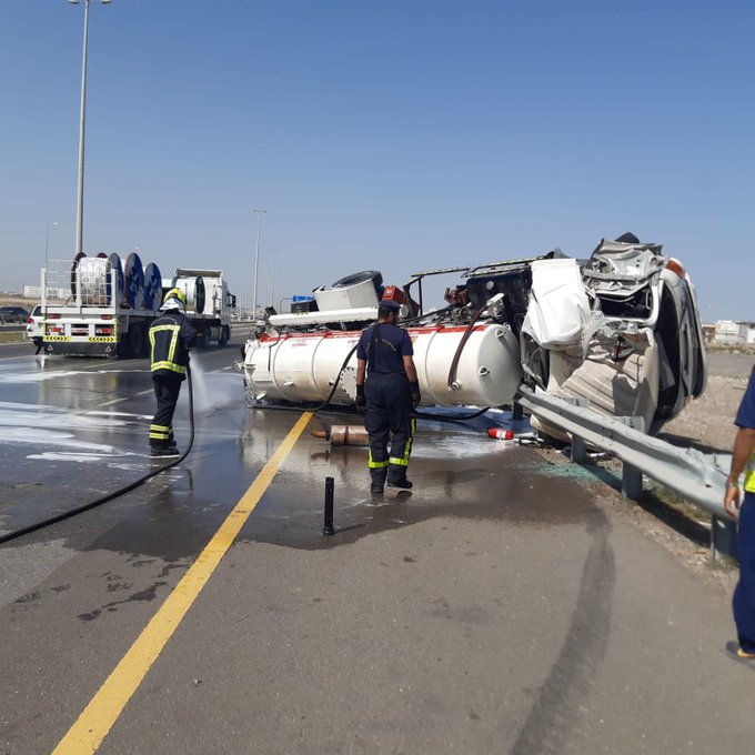 وهج الخليج_ مسقط نبهت الإدارة العامة للمرور من حادث تدهور لشاحنة بعد جسر "المعبيلة" باتجاه الباطنة فعلى مستخدميه توخّي الحيطة والحذر، والالتزام بالسياقة الوقائية.