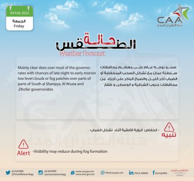 وهج الخليج-مسقط الأرصاد العمانية : حالة الطقس ودرجات الحرارة لهذا اليوم