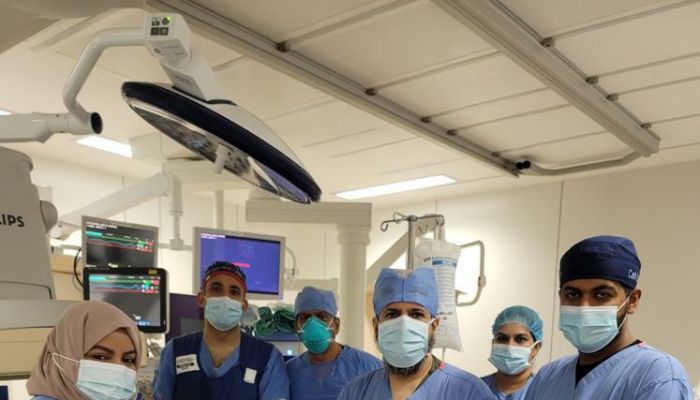 فريق طبي في كهربائية القلب التداخلية بالمستشفى السلطاني ينجح ولأول مرة على مستوى سلطنة عُمان في إجراء زراعة معقدة لجهاز منظم لضربات القلب لمريضة مصابة بخلل في الوصلة الكهربائية بين الأذينين والبطينين بعد عملية قلب مفتوح لتغيير صمام ثلاثي الشرف في الجانب الأيمن للقلب.