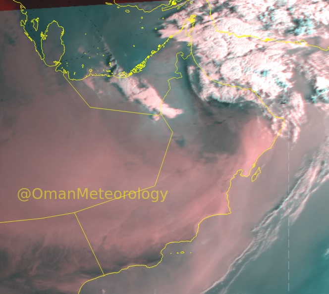 و أوضحت الأرصاد في وقت سابق : استمرار تشكل ونشاط السحب مع هطول أمطار متفرقة على سواحل بحر عمان ومحافظة مسندم وجبال الحجر مع فرص تصاعد الغبار والأتربة على المناطق الصحراوية و المكشوفة بفعل الرياح النشطة.