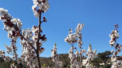 زهور ثمار المشمش تشكل لوحة فنية على مدرجات جبل شمس