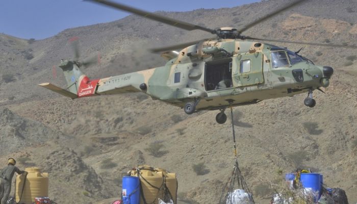 قام سلاح الجو السُّلطاني العُماني اليوم وبإسناد من الجيش السُّلطاني العُماني بتسيير إحدى طائراته العمودية إلى أهالي قرية صيا الواقعة في الجبل الأسود بولاية قريات لنقل المواد الاستهلاكية إلى أهالي تلك المناطق وتسهيل مهمة إيصال هذه المواد للمواطنين القاطنين فيها لصعوبة الوصول إليها بواسطة الطرق البرية.