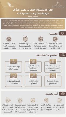 أعلن جهاز الاستثمار العماني خلال الملتقى الإعلامي حول ميثاق حوكمة الشركات المملوكة للدولة، عن أبرز ملامح الإطار العام لميثاق الحوكمة.