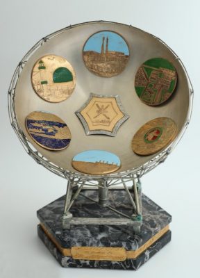 أما المجسم فهو مُهدى من اللجنة الرئيسة للاحتفالات بالعيد الوطني إلى السلطان الراحل (طيب الله ثراه)؛ بمناسبة العيد الوطني السادس المجيد (25 ذي القعدة 1396هـ/ 18 نوفمبر 1976م)، وهو مصنوع من الذهب، والفضة، وتقنية “المينا” الملونة، والرخام، والمخمل.