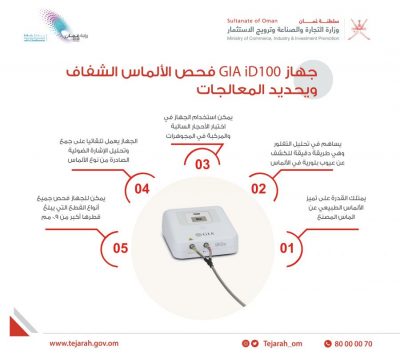 في إطار سعي وزارة التجارة والصناعة وترويج الاستثمار في تطوير خدماتها المقدمة لمقتني وتجار الألماس، الوزارة تدخل جهازا جديدا لفحص الألماس الشفاف.