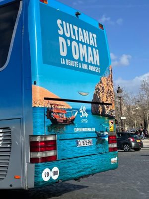 أطلقت وزارة التراث والسياحة في العاصمة الفرنسية باريس حملة ترويجية خلال شهر فبراير الجاري 2022م تسلط الضوء على جمال سلطنة عمان عبر حافلات النقل العامة في أرقى أماكن العاصمة وخاصة الشانزليزيه وبرج إيفل وساحة الكونكورد.