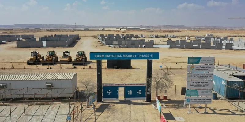 بلغت نسبة الإنجاز في المرحلة الأولى من مشروع سوق المواد بالمنطقة الاقتصادية الخاصة بالدقم حاليًّا حوالي 40 بالمائة، الذي يضم عددًا من ورش التصنيع والمستودعات والمعارض تحت سوق واحد.