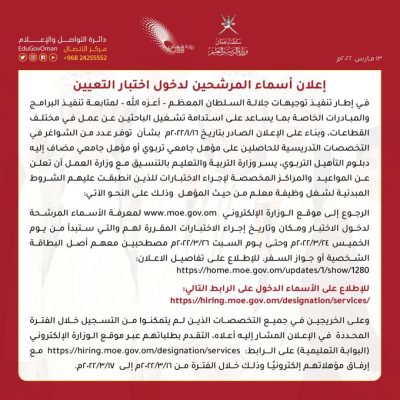 الإعلان عن أسماء المرشحين لدخول اختبار التعيين