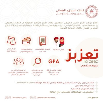 وهج الخليج_ مسقط أطلق البنك المركزي برنامج “تعزيز” لتدريب الخريجين العمانيين، بهدف تعزيز قدراتهم المعرفية في القطاع المصرفي.