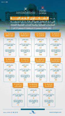 وهج الخليج_ مسقط نشرت وزارة العمل إحصائية بعدد الشكاوى العمالية التي تم التعامل معها أمام لجان تسوية المنازعات العمالية برئاسة أصحاب الفضيلة القضاة