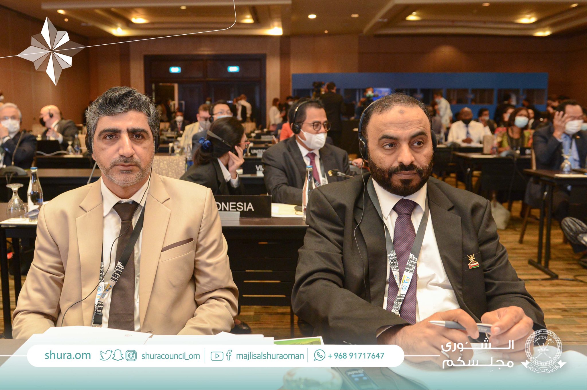ضمن اجتماعات الجمعية العامة الـ ١٤٤ للاتحاد البرلماني الدولي يشارك مجلس عمان في اجتماعات جمعية الأمناء العامين للبرلمانات الوطنية،وذلك، بحضور سعادة د.خالد السعدي أمين عام مجلس الدولة وسعادة الشيخ أحمد الندابي أمين عام مجلس الشورى.