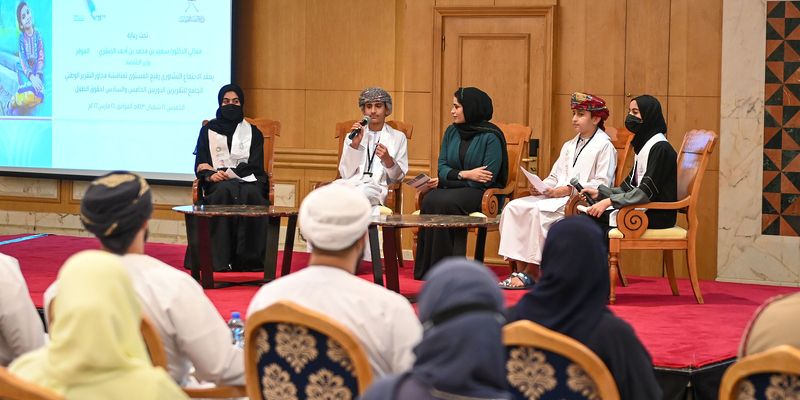 وأفاد أن النظام الأساسي للدولة أشار في مادته الـ 15 على التزام الدولة برعاية الطفل والاستثمار الأمثل في الطفولة كإحدى الدعائم الأساسية التي ستسهم في بناء الوطن مستقبلًا مضيفا أن التشريعات والقوانين والسياسات الوطنية جاءت ملبية لجوانب الرعاية والحماية وتنمية الطفولة وفق النهج الحقوقي للأطفال في سلطنة عمان الذين يمثلون 44 بالمائة من إجمالي العمانيين و31 بالمائة من إجمالي السكان حتى نهاية عام 2021م.