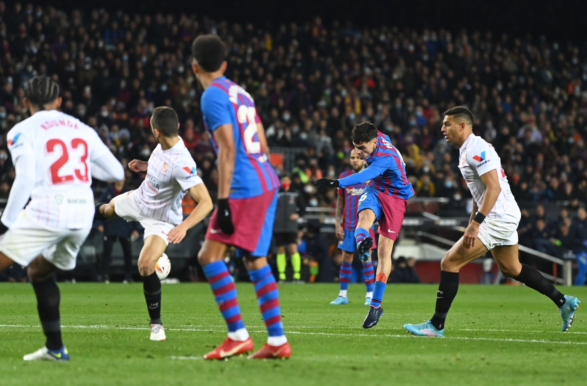 تألق فريق برشلونة في الدوري الإسباني في مباراته مع إشبيلية بهدف جميل في الدوري، سجله لاعب برشلونة بيدري في الدقيقة 72 من المباراة. وبذلك يحتل برشلونة المركز الثاني على جدول الترتيب برصيد 57 نقطة متساويًا مع أتلتيكو مدريد بنفس الرصيد، ويبتعد عن المتصدر الريال بفارق 12 نقطة.