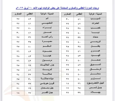 إليكم درجات الحرارة في مختلف ولايات سلطنة عمان: