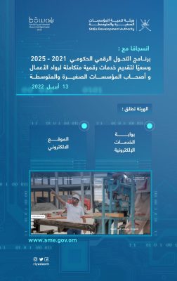 أطلقت هيئة تنمية المؤسسات الصغيرة والمتوسطة بوابة الخدمات الإلكترونية لرواد الأعمال والموقع الإلكتروني المطور للهيئة، إنسجاما مع برنامج التحول الرقمي الحكومي وسعيًا لتقديم خدمات رقمية متكاملة لأصحاب المؤسسات الصغيرة والمتوسطة ورواد الأعمال.