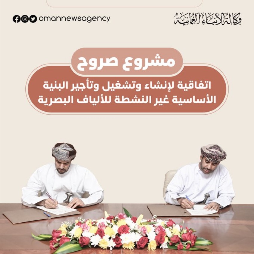 وزارة الإسكان والتخطيط العمراني توقع اتفاقية مع الشركة العُمانية للنطاق العريض لإنشاء وتشغيل وتأجير البنية الأساسية غير النشطة للألياف البصرية لمشروع “صروح” وتمكين موارد وقدرات الشركة لتوفير خدمات الاتصالات.