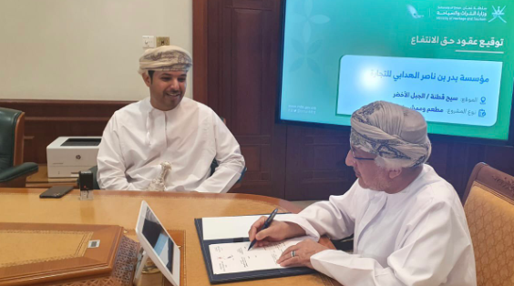 وقعت وزارة التراث والسياحة 7 عقود بنظام حق الانتفاع لتنفيذ مشاريع سياحية على أراضٍ حكومية تابعة للوزارة، وتشمل المشاريع إقامة فندق من فئة 4 نجوم بولاية مرباط، ومشروع مطعم وممشى زجاجي وجلسات خارجية ومنطقة ألعاب للأطفال في الجبل الأخضر، و5 مخيمات سياحية بولاية بدية.