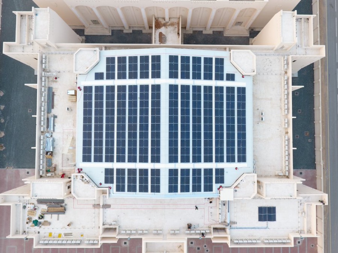 وتم تركيب 246 من الألواح الكهروضوئية لتكون مظلةً لمواقف السيارات بطاقة إنتاجية تصل إلى 106 كيلو واط بمدرسة السلطنة للبنات / 10-12/.