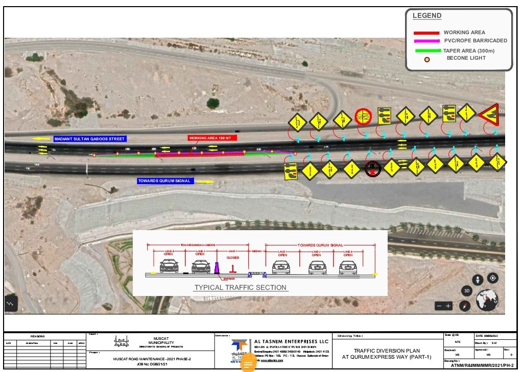 استمرارًا لأعمال صيانة الطرق بمحافظة مسقط وبالتعاون مع الإدارة العامة للمرور ستقوم بلدية مسقط بإغلاق جزئي لشارع مسقط السريع بعد جسر الإعلام باتجاه الخارج وذلك ابتداءً من مساء اليوم 12مايو2022 وحتى صباح يوم الأحد الموافق 15مايو2022؛ بغرض صيانة الجزء المتضرر من الشارع، يرجى الانتباه.