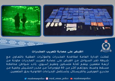 الرئيسية/أخبار محلية/القبض على عصابة لتهريب المخدرات مكونه من ثلاثة متسللين ومقيم آسيوي أخبار محلية القبض على عصابة لتهريب المخدرات مكونه من ثلاثة متسللين ومقيم آسيوي17/05/2022. 17/05/2022وهج الخليج – مسقطShare on:WhatsApp17/05/2022. 17/05/2022 فيسبوك X لينكدإن Tumblr بينتيريست Reddit VKontakte مشاركة عبر البريد طباعة