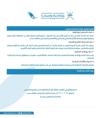 وهج الخليج - مسقط أعلنت وزارة التراث والسياحة إعادة طرح منافسة إدارة وتشغيل وتوظيف حصن بخا بمحافظة مسندم.