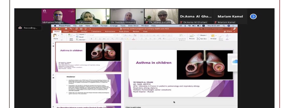 نظمت دائرة الأمراض غير المعدية متمثلة بقسم مكافحة الأمراض غير المعدية بوزارة الصحة بالتعاون مع شركة أسترازينيكا اليوم ( الخميس ) حلقة نقاش افتراضية حول ( مستجدات إدارة وعلاج الربو عند الأطفال ) .