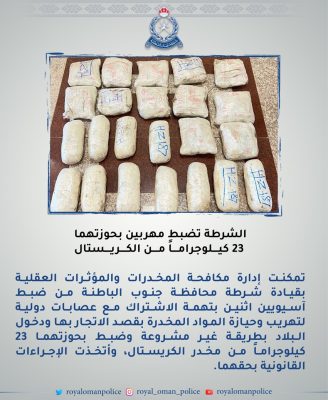الرئيسية/أخبار محلية/ضبط مهربين بحوزتهما 23 كيلوجراماً من مخدر الكريستال أخبار محلية ضبط مهربين بحوزتهما 23 كيلوجراماً من مخدر الكريستال30/05/2022. 30/05/2022وهج الخليج- مسقطShare on:WhatsApp30/05/2022. 30/05/2022 فيسبوك X لينكدإن Tumblr بينتيريست Reddit VKontakte مشاركة عبر البريد طباعة